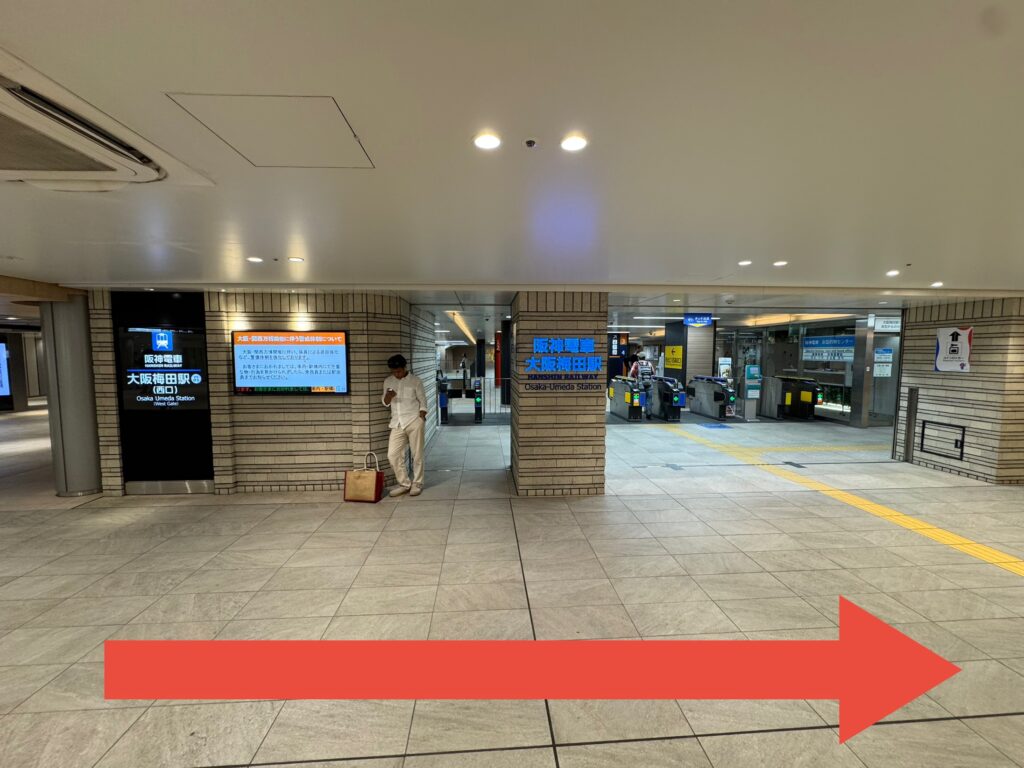 (阪神電車から来られる方は「大阪梅田駅」西口改札から出て左手に曲がってください。)