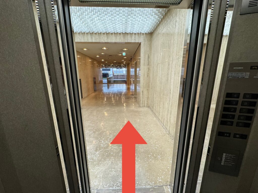 まっすぐ進むとエレベーターがありますので、1階で降ります。