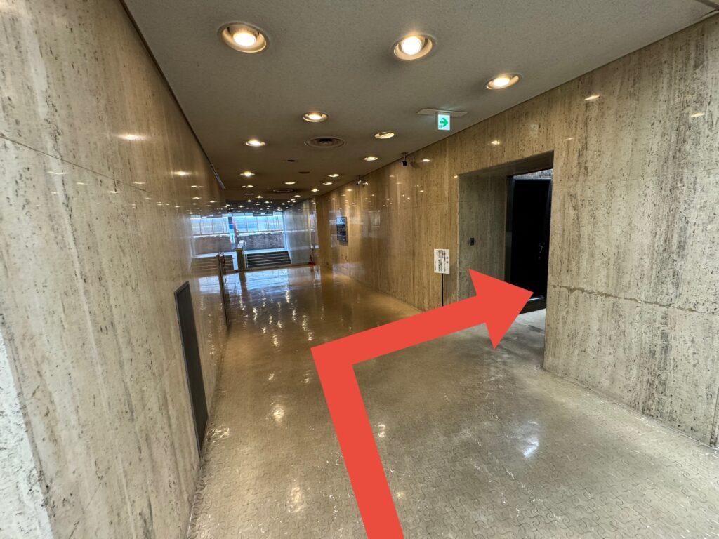 おつかれさまです、到着です。矢印より、中にお入りください。