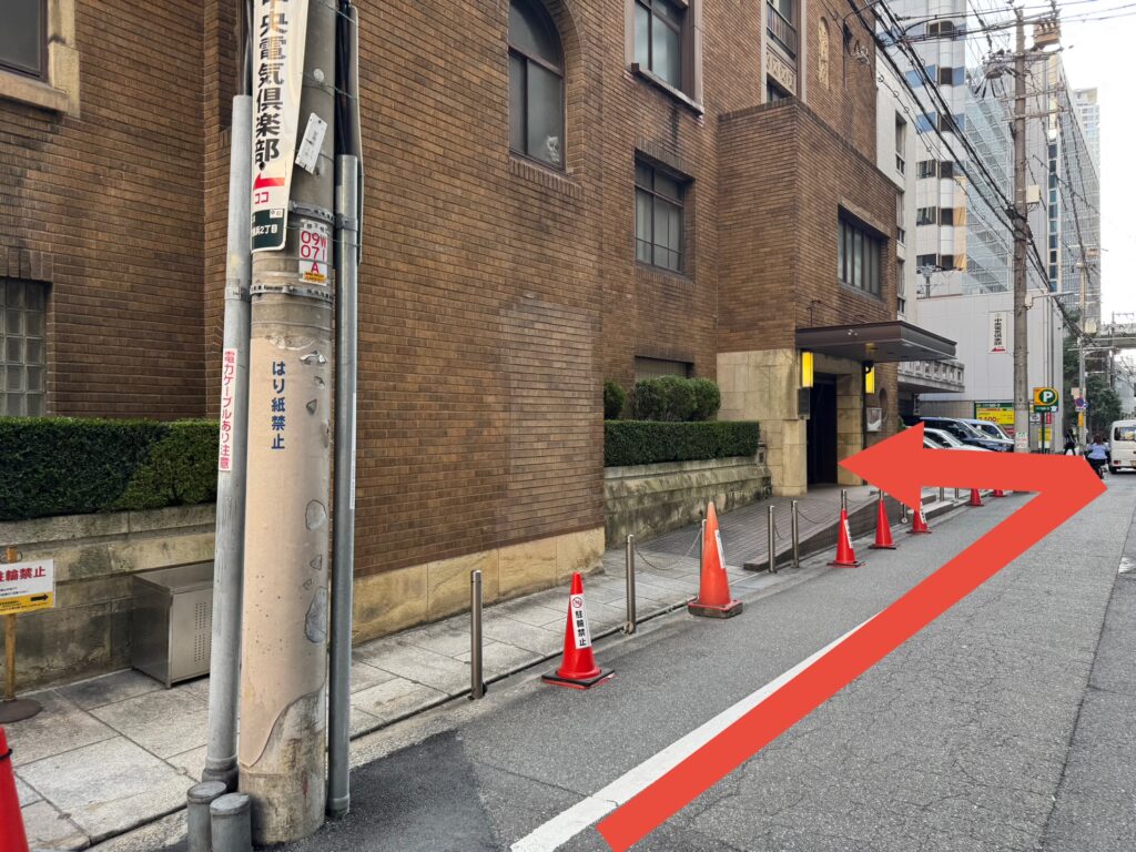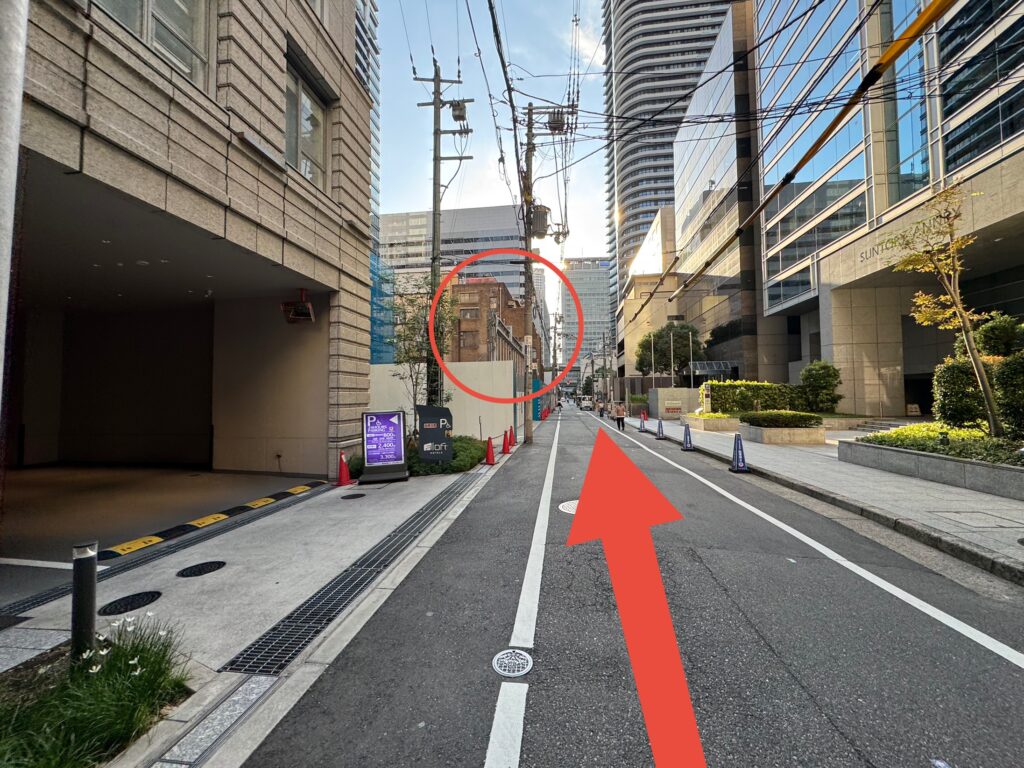 ※ JR北新地駅から来られる方は西出口の改札から出たら左へ歩くと上の画像の場所にでます。